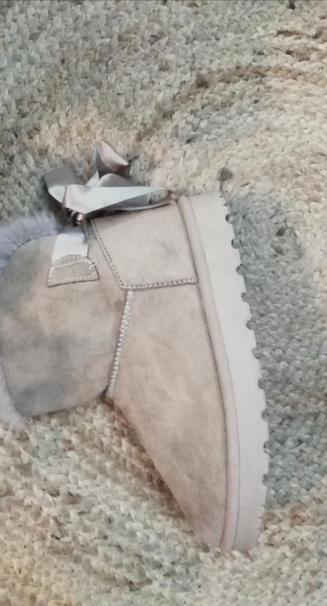 Bottine chaude, fourrure synthétique. Attache arrière. Semelle extérieure antidérapante