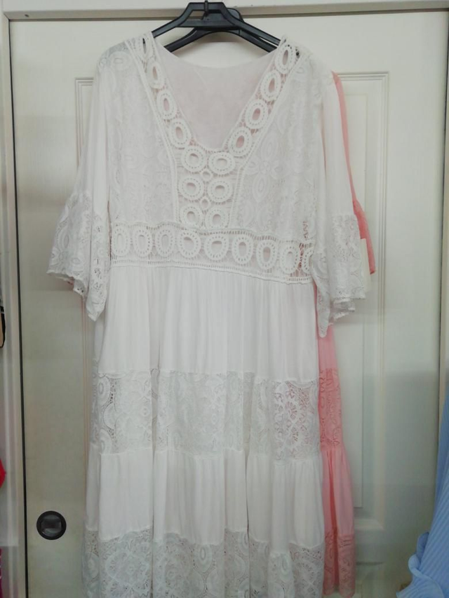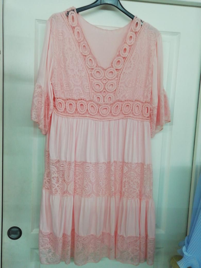 Robe dentelle manches 3/4. Taille unique, 55% viscose 45%coton