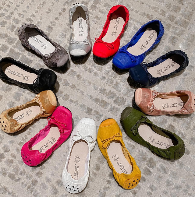 Ballerines plates, composition, 100%cuir. Intérieur et première en cuir. Idéale pieds sensibles , Semelle en antidérapante, légère, elle se porte aussi bien avec une jupe , une robe ou un pantalon.