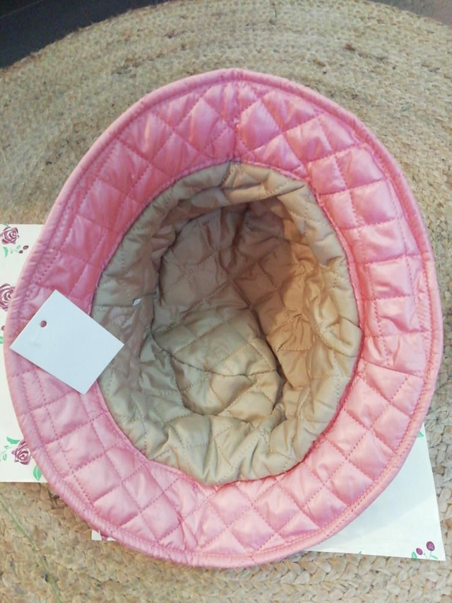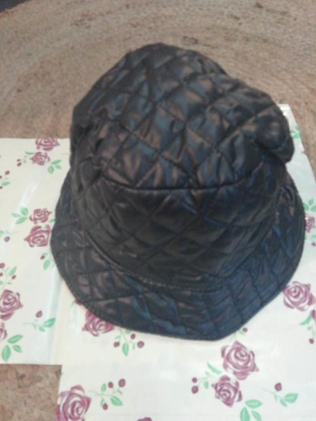 100%polyester, doublure impeccable. Taille unique. Qui équivaut à un 57 niveau calotte.
